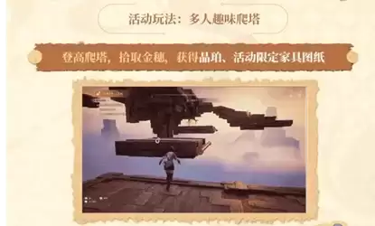 喜欢挑战的玩家,可以直奔【登云拾穗】。这个活动需要组队爬塔,在过程中收集“金穗”,最终的回报是晶珀和限定家具图纸,非常适合喜欢PVE协作的玩家。