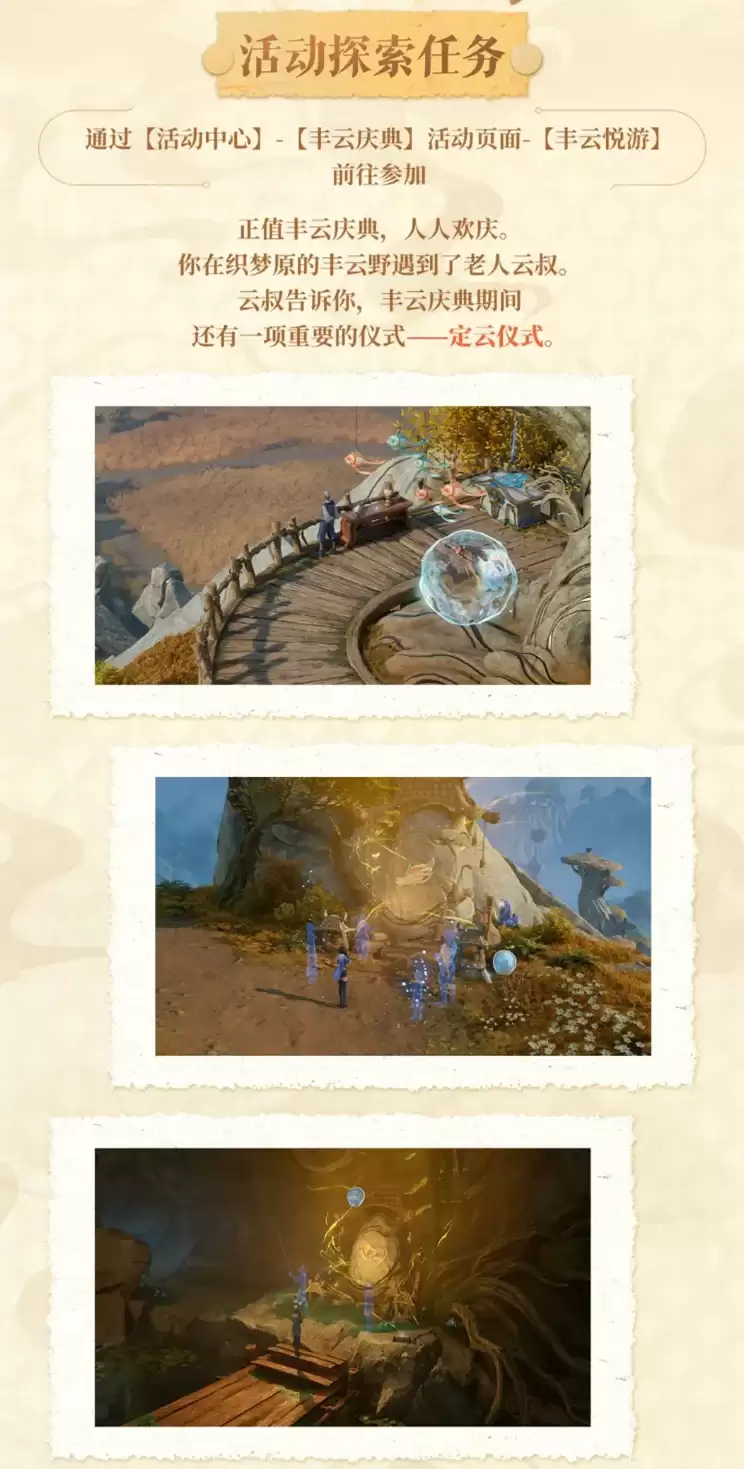 说了这么多活动,它们的核心舞台都集中在“丰云野”这张地图上。为了获得最完整的剧情体验,建议玩家先接取并完成主线第六章“定云除厄记”的溯闻任务。这个任务的关键,是帮助NPC“云叔”完成四个祈福仪式。