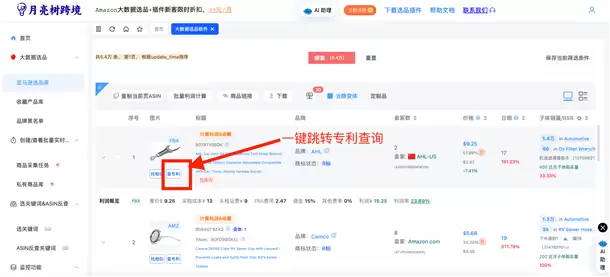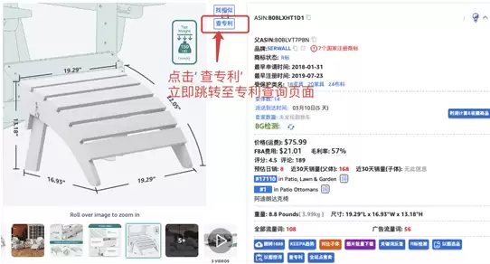 亚马逊选品库直达:对于选品库中的商品,同样支持一键查询外观专利,将合规检查无缝嵌入选品决策环节。