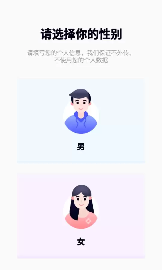 接下来,应用可能会要求你提供一些基础信息以便个性化服务。第一步通常是选择性别,点击对应的“性别”选项后,便可继续下一步操作。