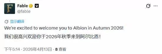 就在传闻发酵数小时后,《神鬼寓言》的官方社交媒体账号亲自出面澄清,在回复玩家提问时明确宣布:“我们无比期待能在2026年秋季,迎接你来到阿尔比恩(Albion)世界!”