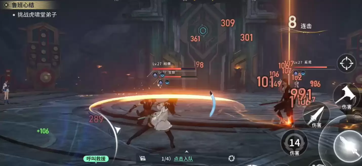 登上二楼,真正的挑战才刚刚开始——虎啸堂弟子在此等候。如果觉得单人应对吃力,完全可以呼叫支援。游戏贴心地设计了协作机制:即便没有固定队友,你也可以通过界面上的呼叫功能,招募其他在线玩家前来助阵。