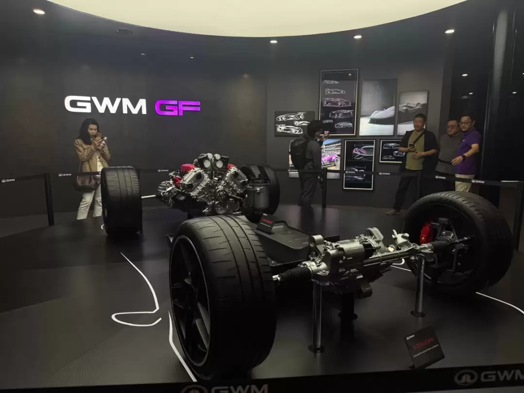除了琳琅满目的整车产品,长城汽车此次还首次公开展示了其全新的高性能动力架构。这套架构包括自研的超级V8发动机、大量应用碳纤维的轻量化解决方案,以及首次采用的中置动力布局。官方明确表示,这套架构将是其从赛道到民用领域的重要技术储备。