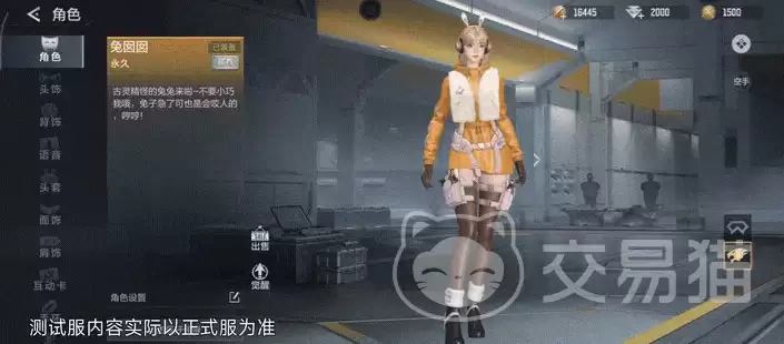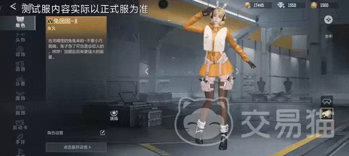兔囡囡为玩家准备了保卫者与潜伏者两套独立的造型。保卫者一侧,蓝白主色调搭配毛绒质感的短外套和百褶裙,标志性的双丸子头加上白色耳机,整体营造出一种“甜酷”融合的独特观感。而切换到潜伏者阵营,画风立刻变得利落起来:明黄色的连体战术服打底,外罩白色马甲和模块化战术腰封,短发造型配合那对可动的兔耳耳机,一股干练的战斗气息扑面而来。两套模型在角色界面都支持360度自由旋转,细节经得起推敲。