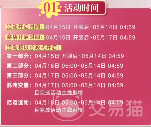 活动内容采用了分阶段解锁的经典模式,方便玩家逐步消化。首期剧情在4月15日当天就能体验;第二阶段紧随其后,于4月16日早上5点开放;到了4月17日早上5点,第三阶段剧情和“混沌变量”玩法将同步上线;而最终的“厄运造物”Boss挑战,则定档在4月18日早上5点。这里有个关键点:所有分支玩法的解锁,都要求你先完成活动的主线剧情。这么做的好处很明显,确保玩家对故事脉络有了充分理解后,再深入探索那些衍生内容,体验会更完整。