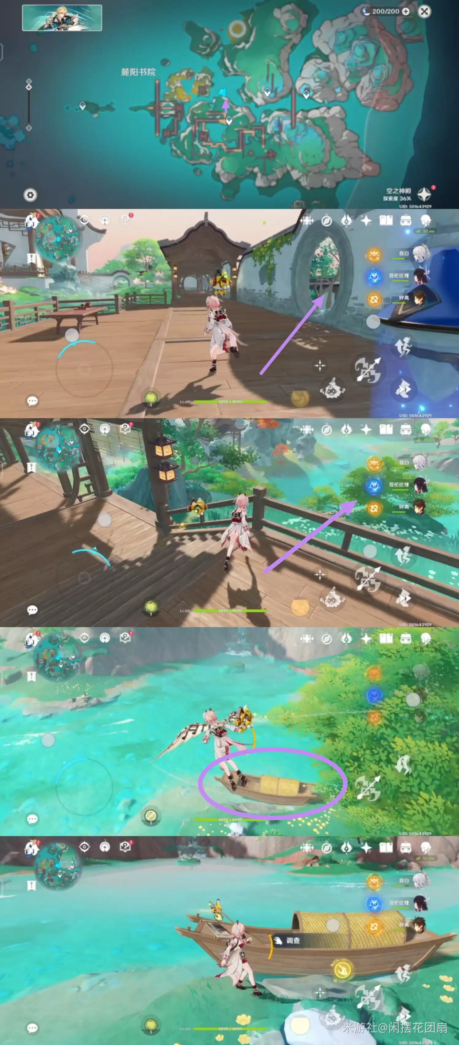 首先,传送到任务起始点附近的锚点。到达后,跟着地面上的任务箭头指引前进,走到角色标记的位置。你会看到水边停着一艘船,过去调查一下。