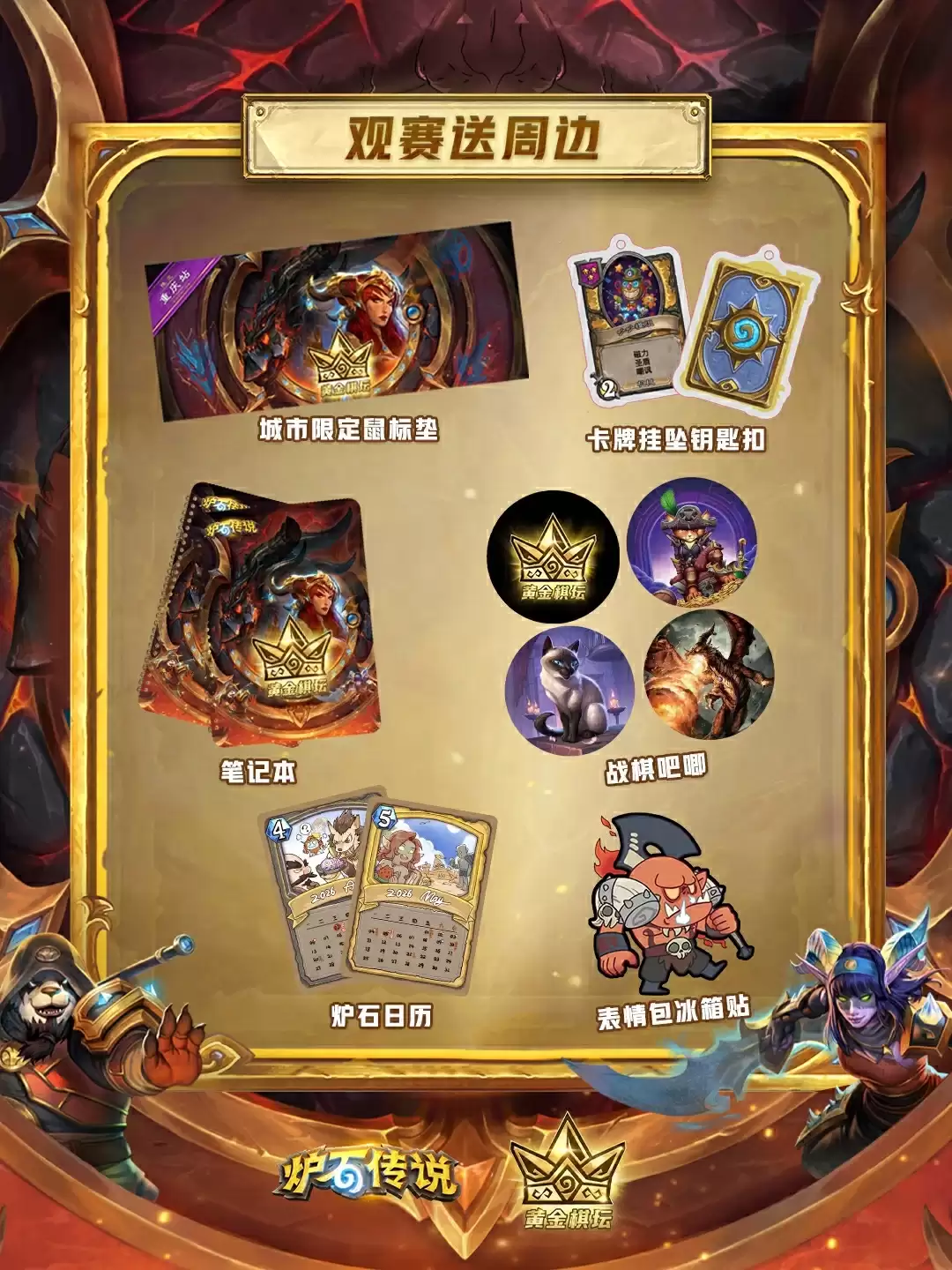福利环节自然不能少。关注比赛进程,战棋代币将以兑换码形式,在比赛场间休息以及决赛开始前分批放出。记得锁定各大平台的《炉石传说》官方直播间,稳稳领取共计4枚战棋代币。