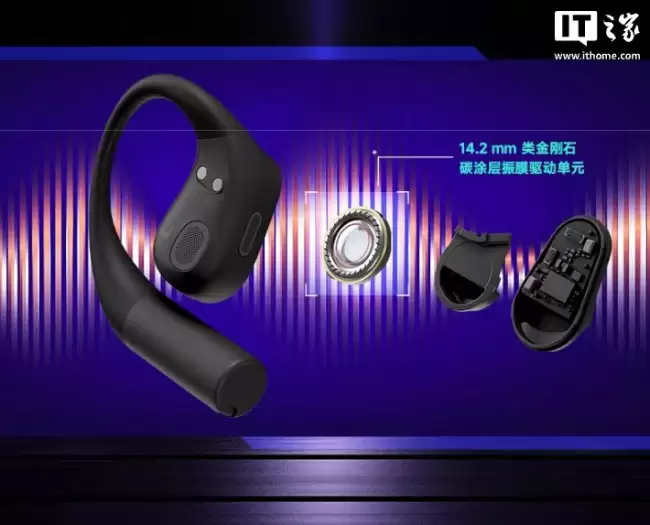 从设计上看,这款耳机主打一个“解放双耳”。它采用了全黑色的外观,配合人体工学耳挂和开放式结构。这种设计的最大好处,就是能彻底告别传统入耳式耳机那种长时间的堵塞和压迫感,让你在沉浸游戏的同时,耳朵也能保持通风舒爽。