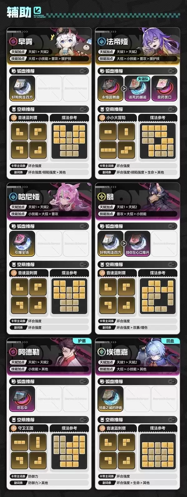 翳:速切爆发型角色,破盾能力强,非常适合融入速切队伍体系。不过在当前版本,她的辅助功能价值暂时大于作为主C的潜力。