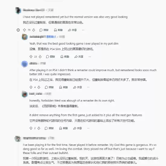 这不,本周复刻版正式加入PS Plus高级会员库后,立刻成了PS Plus相关Reddit板块的热门话题。玩家们的讨论焦点,大多集中在其惊人的画面表现上。