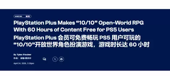 最近游戏圈有个消息挺值得关注。据外媒comicbook报道,PlayStation Plus的Extra和Premium档位会员库迎来更新,多款新游戏可免费游玩。其中一款开放世界RPG内容量惊人,超过60小时,在玩家社区里甚至被不少会员打出了“10/10”的满分评价。不过,标准档(Essential)会员暂时无法免费体验。好在,这本身就是PS4时代的一部经典之作,对于当年错过它的玩家来说,现在或许正是弥补遗憾的好时机。