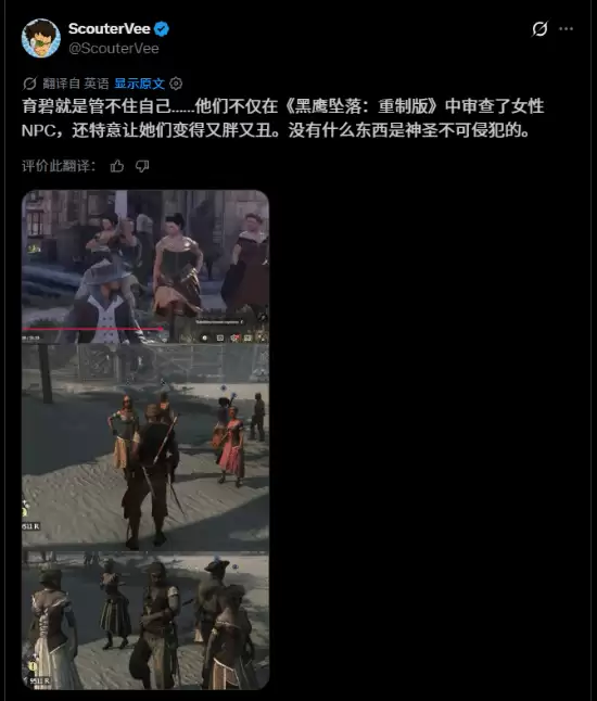 社交媒体上,推主@ScouterVee的观点颇具代表性,其直言育碧不仅对女性角色进行了“审查和谐”,更是“故意让她们变得更不符合传统美感”。相关言论迅速发酵,部分情绪激动的玩家甚至呼吁抵制游戏,认为这是为了迎合特定社会议题而牺牲了视觉表现力。