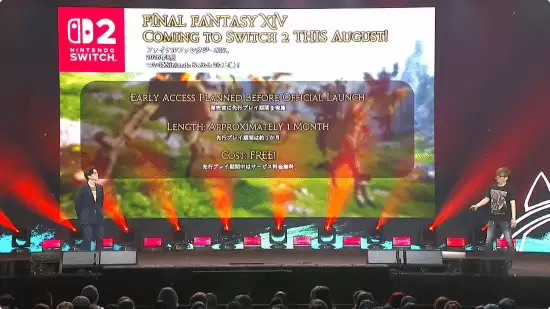 这个消息是在 2026 年 4 月 25 日于美国安纳海姆举行的「FINAL FANTASY XIV Fan Festival 2026」线下活动主题演讲中公布的。根据官方说明,在 Nintendo Switch 2 版正式上线前,为期约一个月的抢先体验期内,玩家可以免费畅玩,这无疑是为新平台版本造势的一步妙棋。