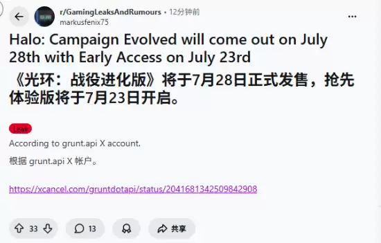 传闻再起:《光环:战役进化》发售日期的谜题与线索 游戏圈子里,靠谱的“谜语人”爆料总能掀起一阵涟漪。最近,一位老熟人——曾在《光环:无限》开发期间多次精准爆料,也是最早指出343工作室(现Halo Studios)将转向虚幻引擎的爆料人Grunt api,又发布了一道耐人寻味的“数学题”。 这道题可