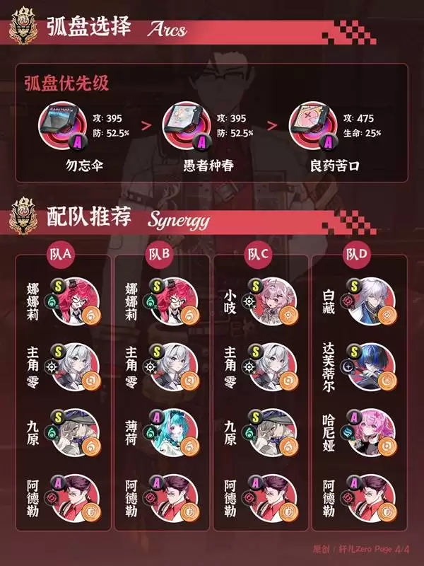弧盘方面,“勿忘伞”无疑是首选,其提供的护盾强化与防御力加成,堪称阿德勒的“官方指定专武”。如果没有,也可以考虑携带“愚者种春”来进一步堆高防御力。至于“良药苦口”,则需要留意其触发条件:阿德勒必须挨打一下才能获得10秒的防御提升,稳定性稍逊一筹。