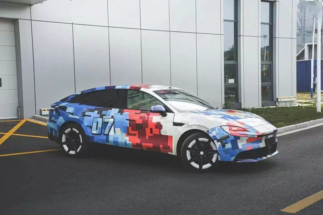 转到侧面,纯电轿跑的韵味就更加浓郁了。从A柱一路滑向车尾的大溜背线条,流畅得没有一丝拖沓。得益于短前悬和长轴距的“黄金比例”设计,车身姿态显得格外矫健,彻底甩掉了传统三厢车的那种笨重感。有意思的是,这个溜背造型看起来并没有过分牺牲后排的头部空间,在帅气和实用之间,似乎找到了一个不错的平衡点。无框车门和后排隐私玻璃这些配置,大概率也会出现,进一步烘托它的运动格调与私密感。