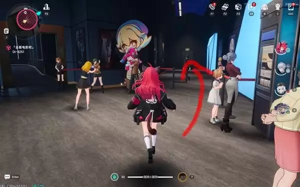 进入电影院后,直接上到二楼。到了二楼往左边走,你会看到一个通往内部房间的通道。
