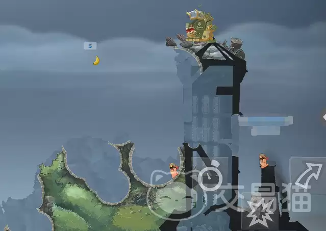 真正的威力在于配合:当你的火箭炮呼啸而出,即将命中目标区域时,同步引爆早已埋设好的香蕉冲击波。双重爆炸能量叠加,能瞬间将输出阈值拉满。不过,使用香蕉冲击波必须注意一点:它有很强的弹跳特性,如果不小心掉进水里,就会直接失效。所以部署前,务必看清周围的水体分布和可能的反弹路径,确保它最终能待在有效的杀伤区内。