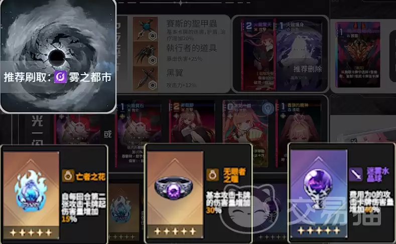梅玲的战斗逻辑,核心在于围绕“攻防一体”这张卡牌做文章。简单来说,就是通过移动类效果大量复制这张卡,从而在单回合内实现连续多次普攻,最后用升龙脚打出多段终结伤害。这里有个关键细节必须注意:只有通过“移动”动作生成的“攻防一体”词条,才能参与连击循环;而通过“抽取”获得的同名卡牌,是无法叠加攻击次数的。在当前版本,物之都市是首推的刷取区域,原因很简单——那里的专属掉落装备,比如王者之花、无言者之瞳、迷雾水晶球这几件关键橙色饰品,其机制与梅玲堪称天作之合。