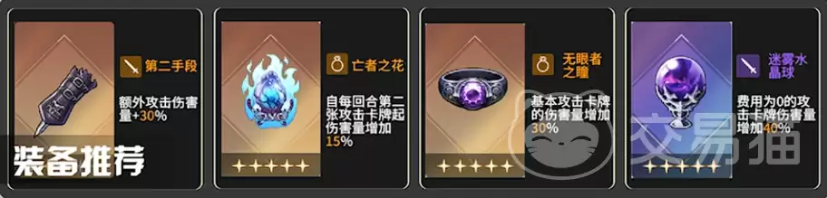 在装备搭配上,“第二手段”这件装备堪称最优解。它不仅能保障升龙脚的多段攻击稳定触发,到了后期还能叠加额外的攻击次数。判断依据就是看卡牌描述里是否明确标注了“额外攻击”字样。“王者之花”能在梅玲每次攻击时提供高额增益;“无言者之瞳”(注:此前有误称为“无限者之瞳”,以此处校正名为准)则在“攻防一体”复制量达标后,激活强力的输出增幅;而“迷雾水晶球”,则被公认为梅玲的专属毕业装备,契合度无可替代。