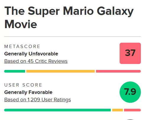 《超级马里奥银河大电影》口碑深度解析:为何媒体与观众评分两极分化? 自《超级马里奥银河大电影》全球公映以来,其口碑评价呈现出极为鲜明的两极分化态势,引发了业界与影迷的广泛讨论。 在汇集了众多专业影评的Metacritic平台上,影片的媒体综评得分仅为37分(满分100),这一分数表明其并未获得主流影