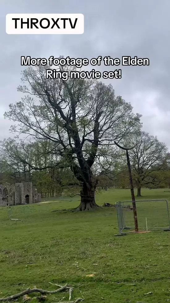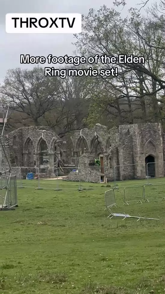 此前,已有海外网友通过社交媒体TikTok分享了疑似《艾尔登法环》电影拍摄现场的布景短片,迅速引发第一轮讨论。近日,同一爆料者再度更新了第二条视频,提供了更多关于场景搭建的细节。