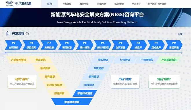 为了将上述分散的能力整合为“一站式”服务,中汽新能源正式推出了新能源汽车电安全解决方案(NESS)咨询平台(https://ness.cnesta.com.cn)。该平台全面涵盖产品需求分析、设计、测试、验证、交付等全流程,其宗旨很明确:致力于为车企提供“一企一策”的高效、定制化电安全技术支持。