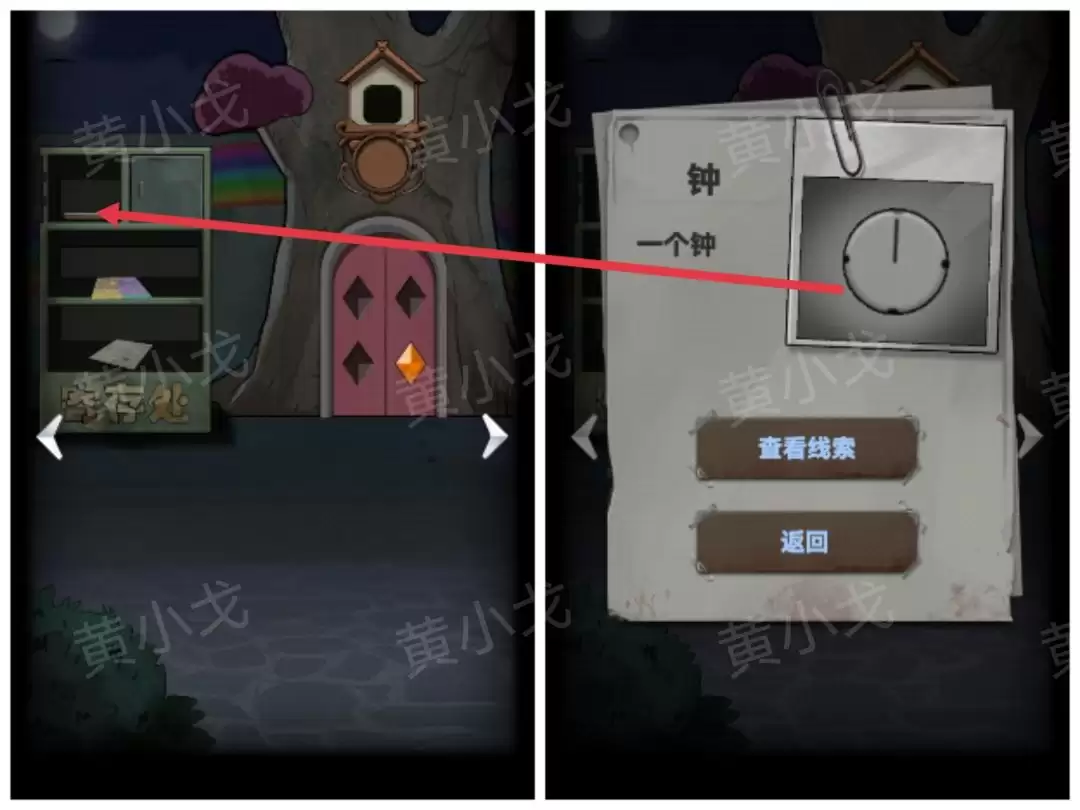 10、继续调时间。当调到6点时,报时鸟的嘴巴会张开,从中取得一枚【游戏币】。这是时间触发的小机关。