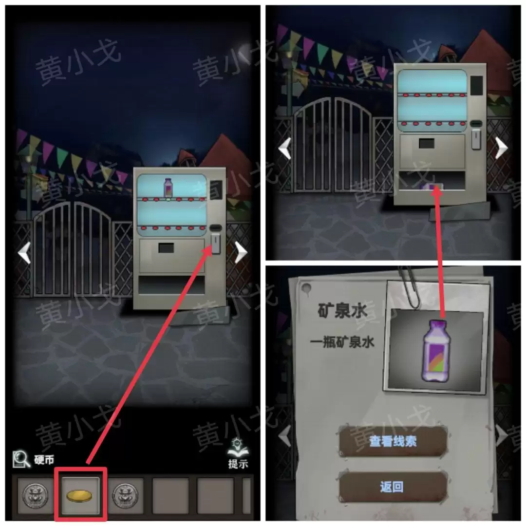 5、把刚才在门口捡到的【硬币】,投入售货机的投币口。哐当一声,买走里面的【矿泉水】。水在这里可不是用来喝的。