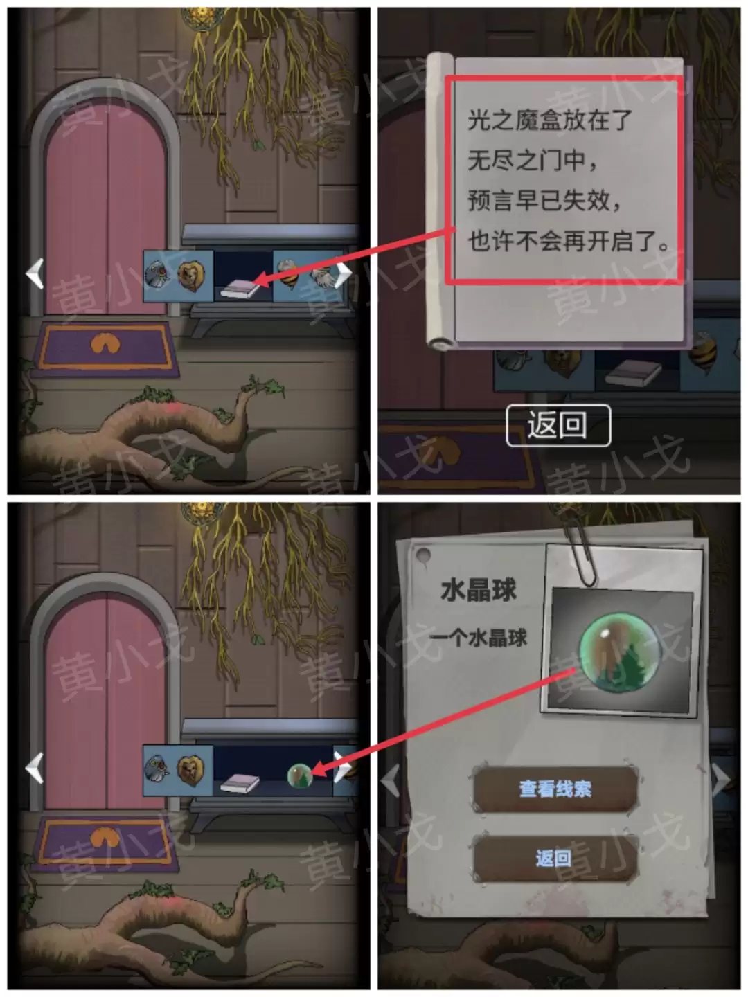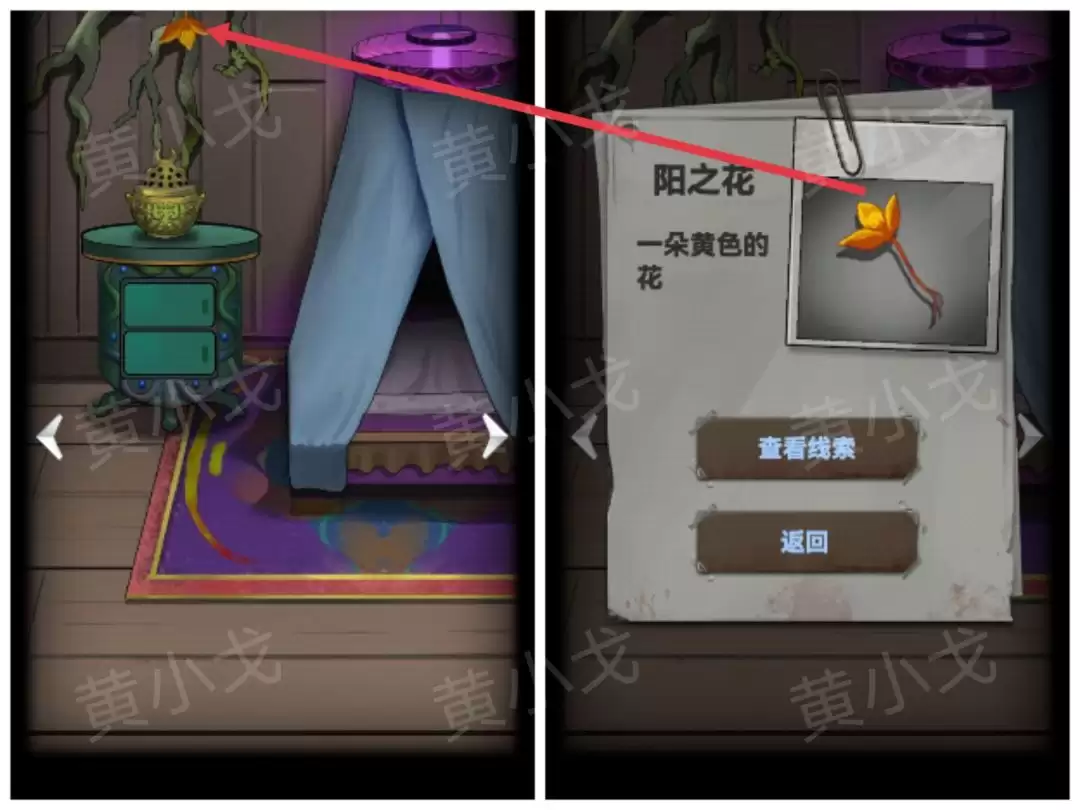 点击床边的香炉。根据之前在无尽之门中获得的纸条线索,将【生之花】、【死之花】、【阳之花】和【阴之花】全部放入香炉,然后用【火柴】点燃。这将开启通往下一阶段的大门。