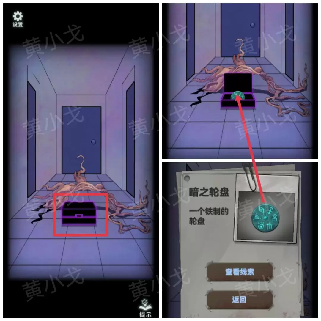 ② 同样,在第三道门后也会出现一个画板,查看上面的画,获取另一组符号及位置线索。这两个画板的线索要区分清楚。