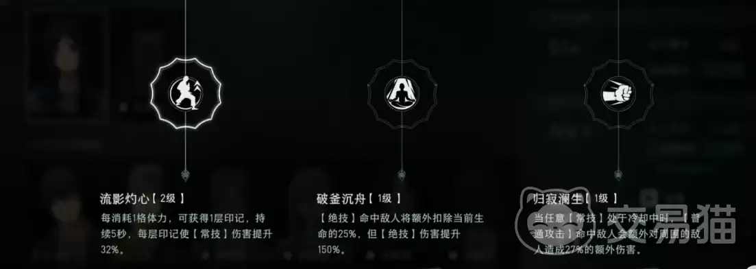 战斗开始前的增益配置,这一步尤为关键,可以说是奠定胜局的基础。其中,“流影灼心”是本关的核心Buff,效果简单粗暴:每叠加1层印记,就能提升32%的伤害倍率,对爆发效率是巨大的强化,务必优先装配。至于其他辅助类Buff,则可以根据个人的操作习惯进行灵活搭配。