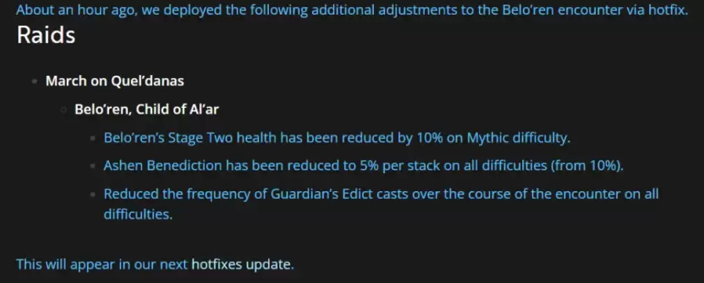 《魔兽世界》正式服史诗难度“贝洛朗,奥的子嗣”已削弱!