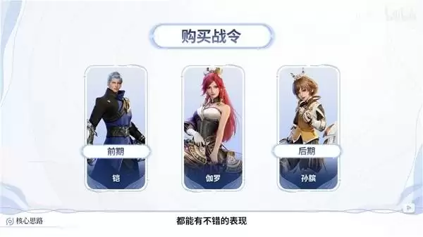 若已购买战令,强烈建议将伽罗作为核心主力培养。前期可搭配“铠”作为共鸣英雄,后期则可考虑更换为“孙膑”,此组合能兼顾优秀输出与团队功能。