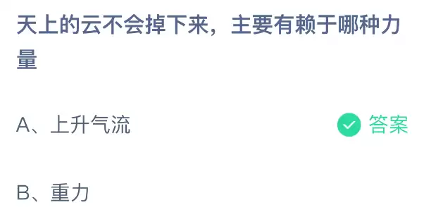 问题:天上的云不会掉下来,主要依靠的是哪种力量?