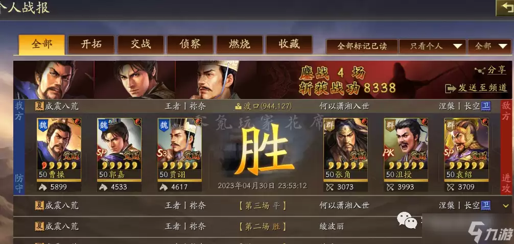 这里说的“富贵骑”核心是SP荀彧,而“曹富贵”则指的是曹操。值得一提的是,这是他所有白板队伍中,唯一练到50级的王牌。