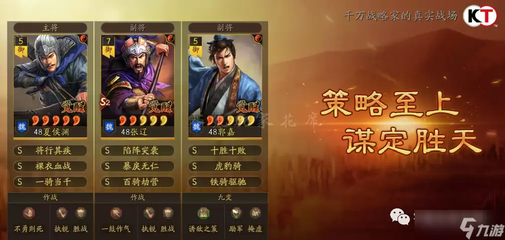 玩曹操爆头骑的前提是拥有“奸雄”宝物。如果没有,那么使用郭嘉才是更稳妥的选择,能确保夏侯渊在前两回合获得洞察状态。