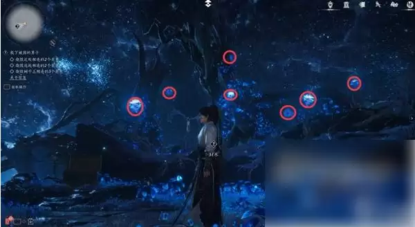 在翟煦的屋子,可以用点xue手法射击窗外的风铃引开他,趁机取得《千愿补辑》和一份“雾林残方”。另外两份残方,则需要根据《千愿补辑》的记载,分别前往“无心居”和“绣金所”获取,具体位置可参考下图。