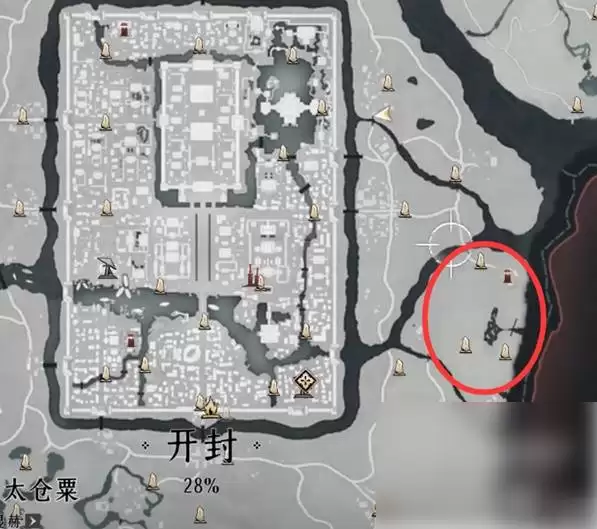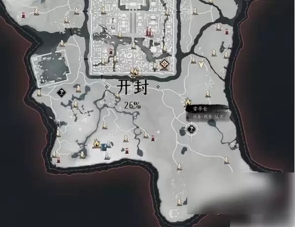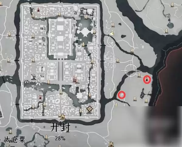 最后,回到郑鄂任务的后续。聆杏村位于开封城东面,在下图标示的位置,找到那棵白色杏花树下的屋子。将手札放入屋内,你会发现,这里正是翟煦的家。两条故事线,在此悄然交汇。