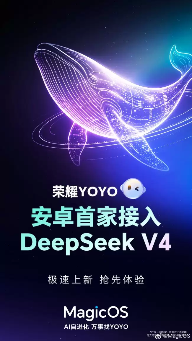荣耀 YOYO 成为安卓阵营首个接入 DeepSeek-V4 大模型的 AI 智能体