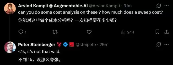 更让人惊讶的是成本。有人问他这一轮大规模扫描花了多少钱,他的回答轻描淡写:不到1000美元。算下来,对5000多个Issue进行深度审查并关闭,平均一个的成本还不到两毛钱。