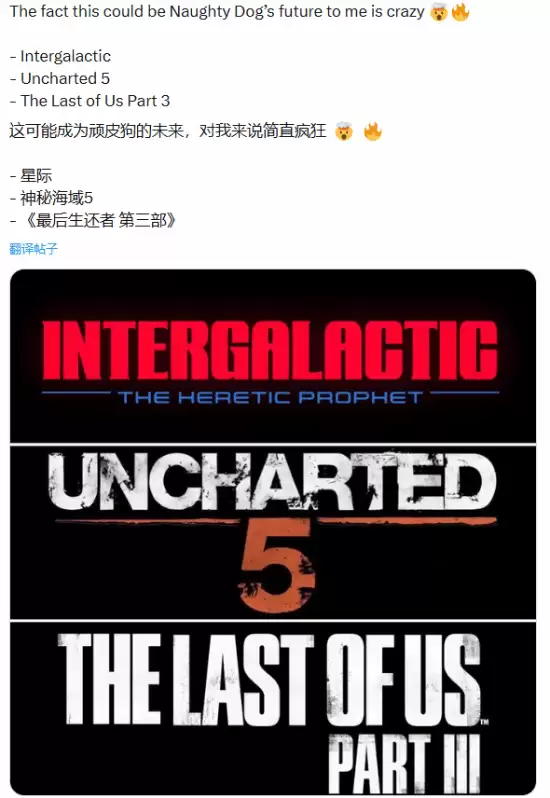 顽皮狗新作传闻引爆期待:十年等待背后,玩家为何始终不离不弃? 近日,海外游戏论坛与社交媒体上流传的一则重磅爆料,再度点燃了全球玩家对顽皮狗工作室未来作品的无限遐想。据知名游戏博主透露,顽皮狗未来的开发蓝图可能包含《神秘海域5》、《最后生还者3》以及一个全新IP《星际:异端先知》。此消息迅速发酵,在各