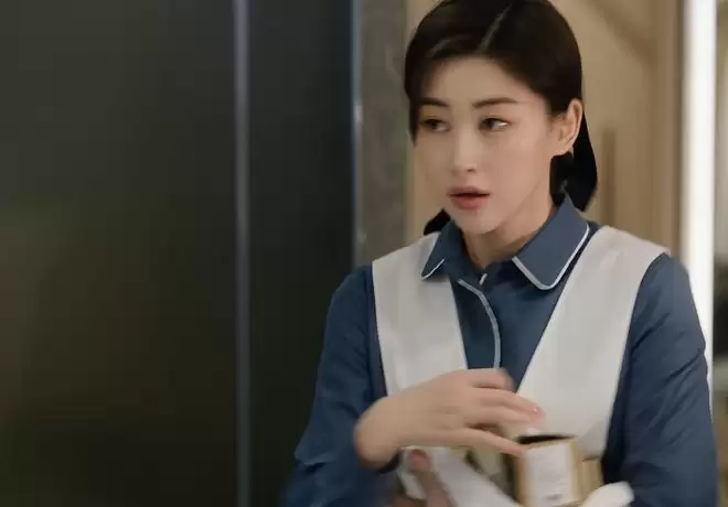 穿上簇新的保洁服,脸上妆容一丝不苟,依旧精致贵气得不合时宜。当然,可以理解为高级酒店要求员工仪表整洁。