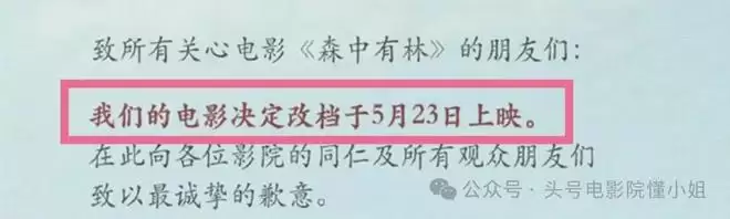 就在这预售遇冷的背景下,4月22日,《森中有林》官宣改档,从原定的5月1日挪到了5月23日。