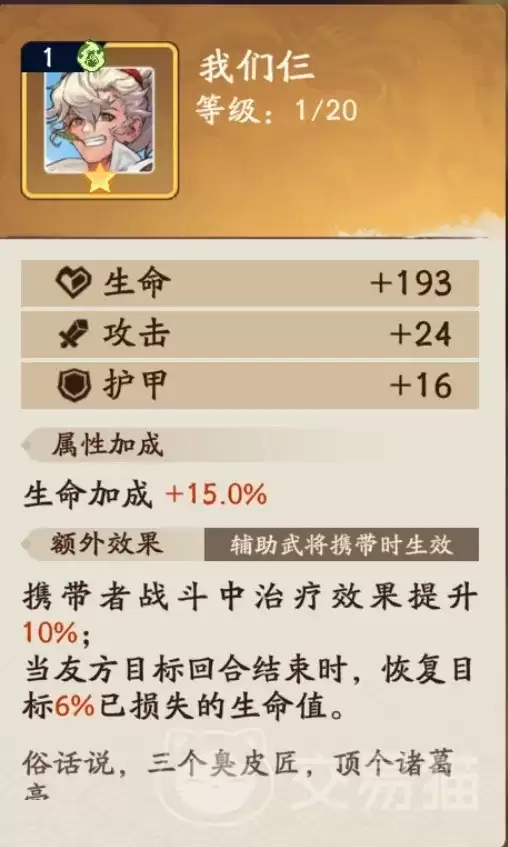 另一个选择是【我们仨】。它直接提升携带者10%的治疗效果,并且当任一队友回合结束时,会为该队友恢复已损失生命值的6%。这套溯影强化的是团队整体的续航和联动性,如果你组建的是一个偏重持久战和互相扶持的阵容,【我们仨】能放大郭嘉的团队辅助价值,让整个队伍的生存能力再上一个台阶。