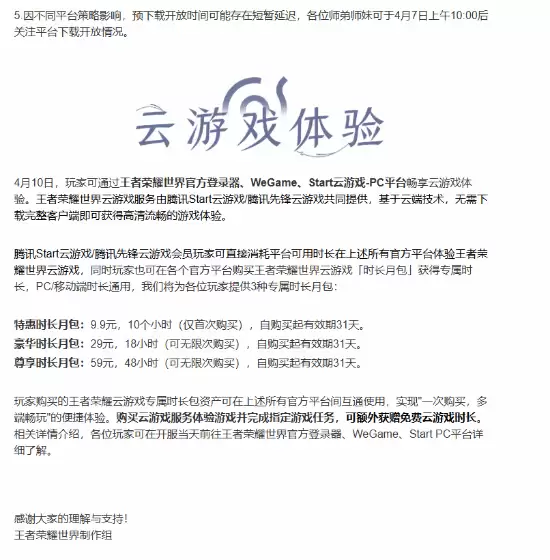 来了!《王者荣耀世界》官方正式发布公告,敲定了预下载的开启时间:今年4月7日上午10点起,将陆续向玩家开放。