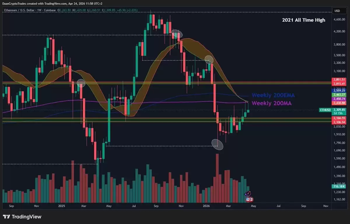 以太坊/美元 (ETH/USD),1周时间框架。来源:Daan Crypto Trades on X
