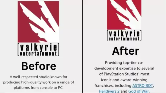 细看官网变化就会发现,多个第一方工作室的简介都已“焕然一新”。以Valkyrie Entertainment为例,其描述不再提及任何PC项目,转而突出其对主机平台重点大作的支持,比如《Astro Bot》《绝地潜兵2》和《战神》系列。