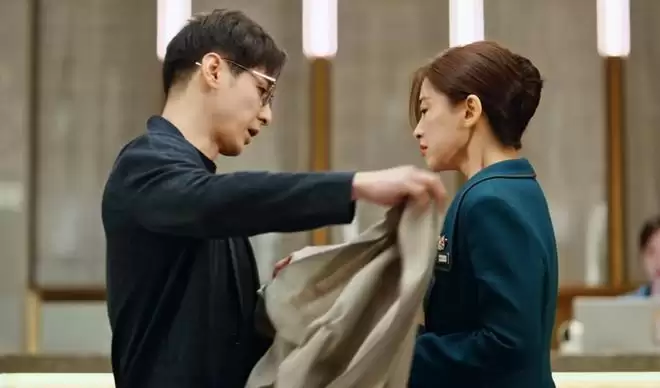一条是女性从底层逆袭的事业线,一条是酒店改革攻坚的职场线,两条主线交织碰撞,剧情张力自然拉满。许蜜语与纪封的初次相遇,充满了上下级的隔阂与理念的冲突。纪封起初看不上这个略显落魄的保洁员,认为她与酒店的专业氛围格格不入。