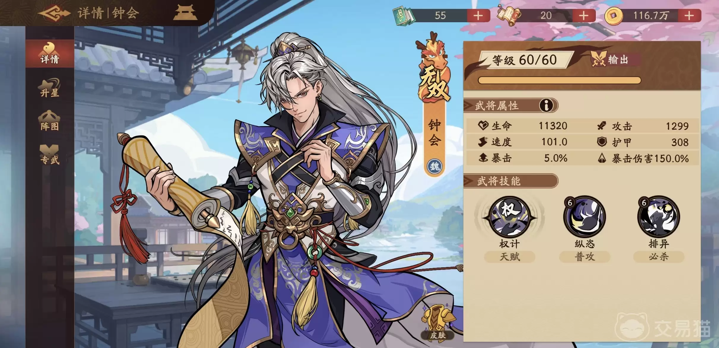 说起钟会的晋升之路,其实挺有意思。他在早期测试版本里还只是个紫色品质的武将,如今在正式服已经稳稳坐上了无双品质的位子。这个变化本身,就足以说明官方对他战斗定位和成长潜力的持续看好。获取途径也相当友好,上线即进入初始卡池,意味着玩家在游戏初期通过常规抽卡就能稳定入手,完全不用苦等限时活动或者特殊渠道。